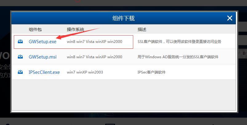 点击【组件下载】,下载VPN客户端组件(此步只需要在第一次使用时执行)
