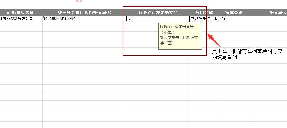 填写模板时,每一列填写说明都在模版中做出了相应的说明: