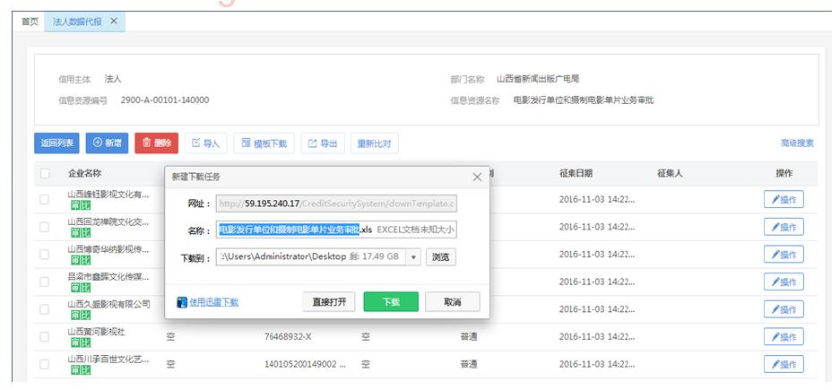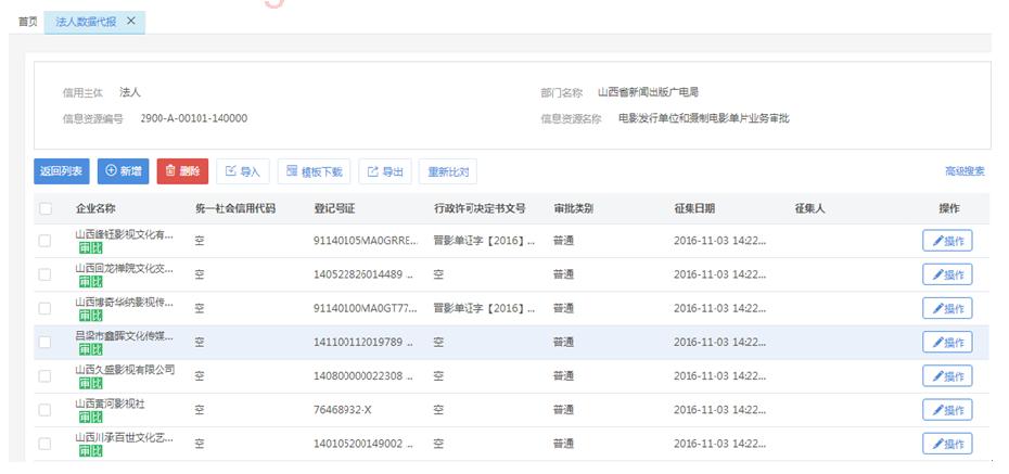 注:现有模板无法满足上报内容时,需联系山西省经济信息中心(山西省信用信息管理中心),技术人员将在3个工作日内根据需求新增或调整模板。